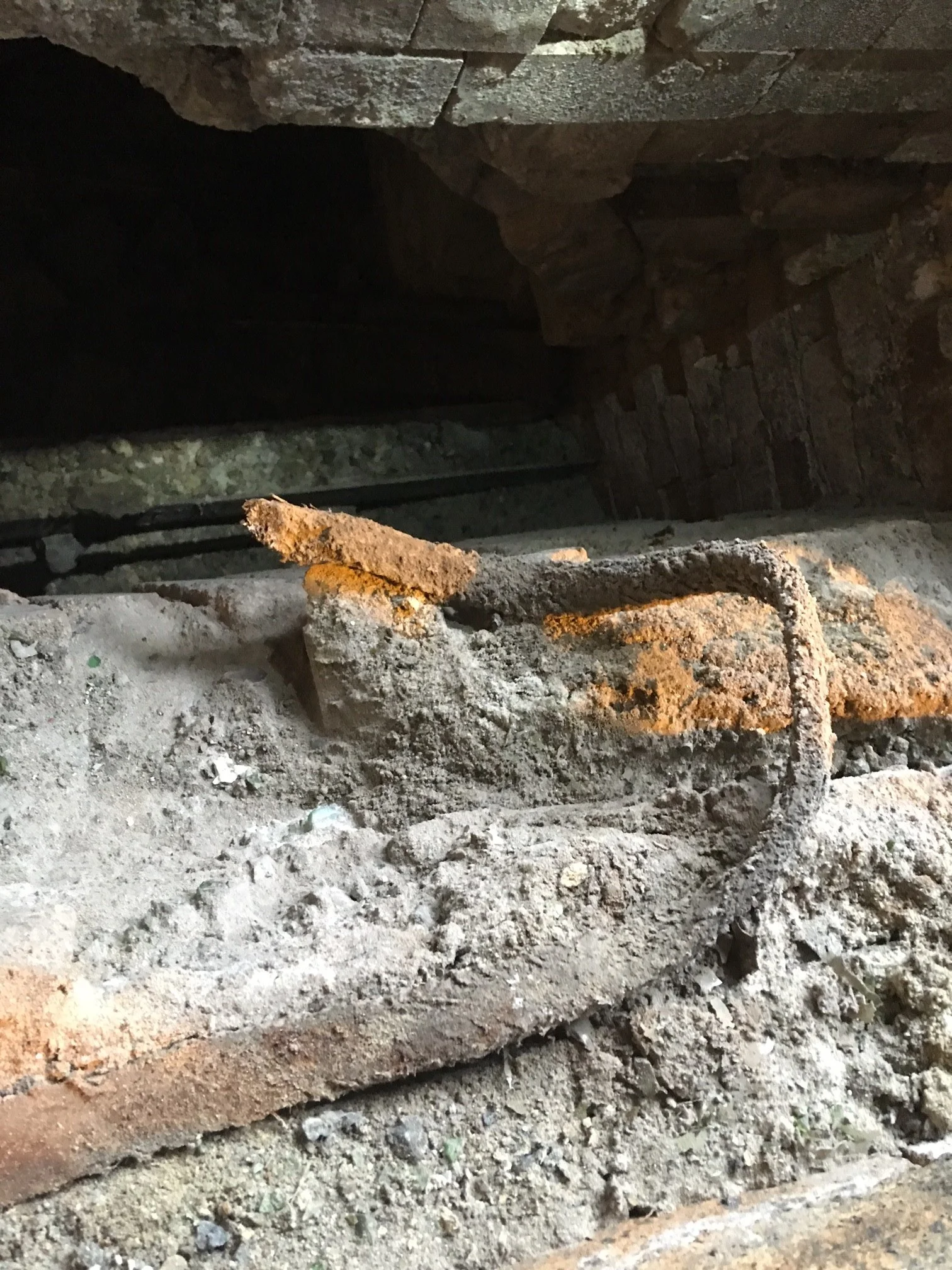 Removal of asbestos wick used as insulation and a joint sealer,beneath the concrete floor. Decontamination of the area.